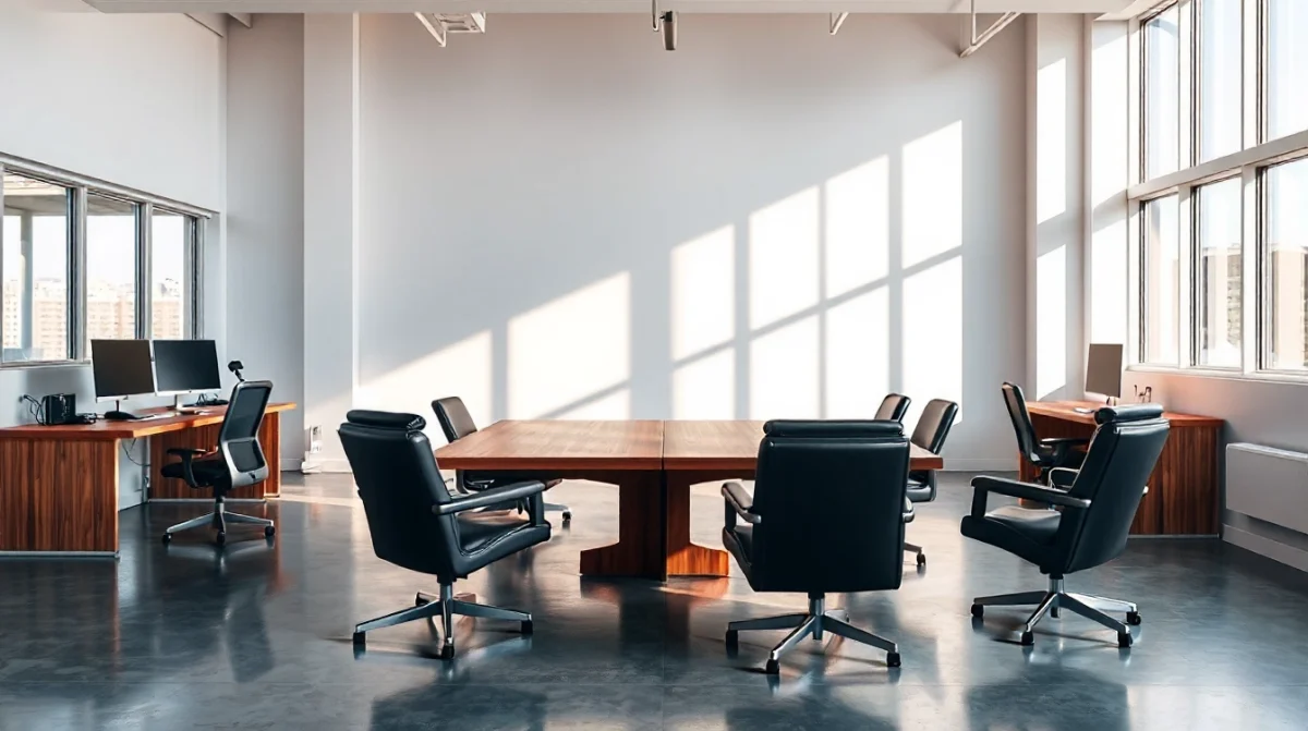 • Mobilier ergonomique : 4 bureaux individuels ajustables, fauteuils de direction, rangements personnels et espace de réunion intégré
